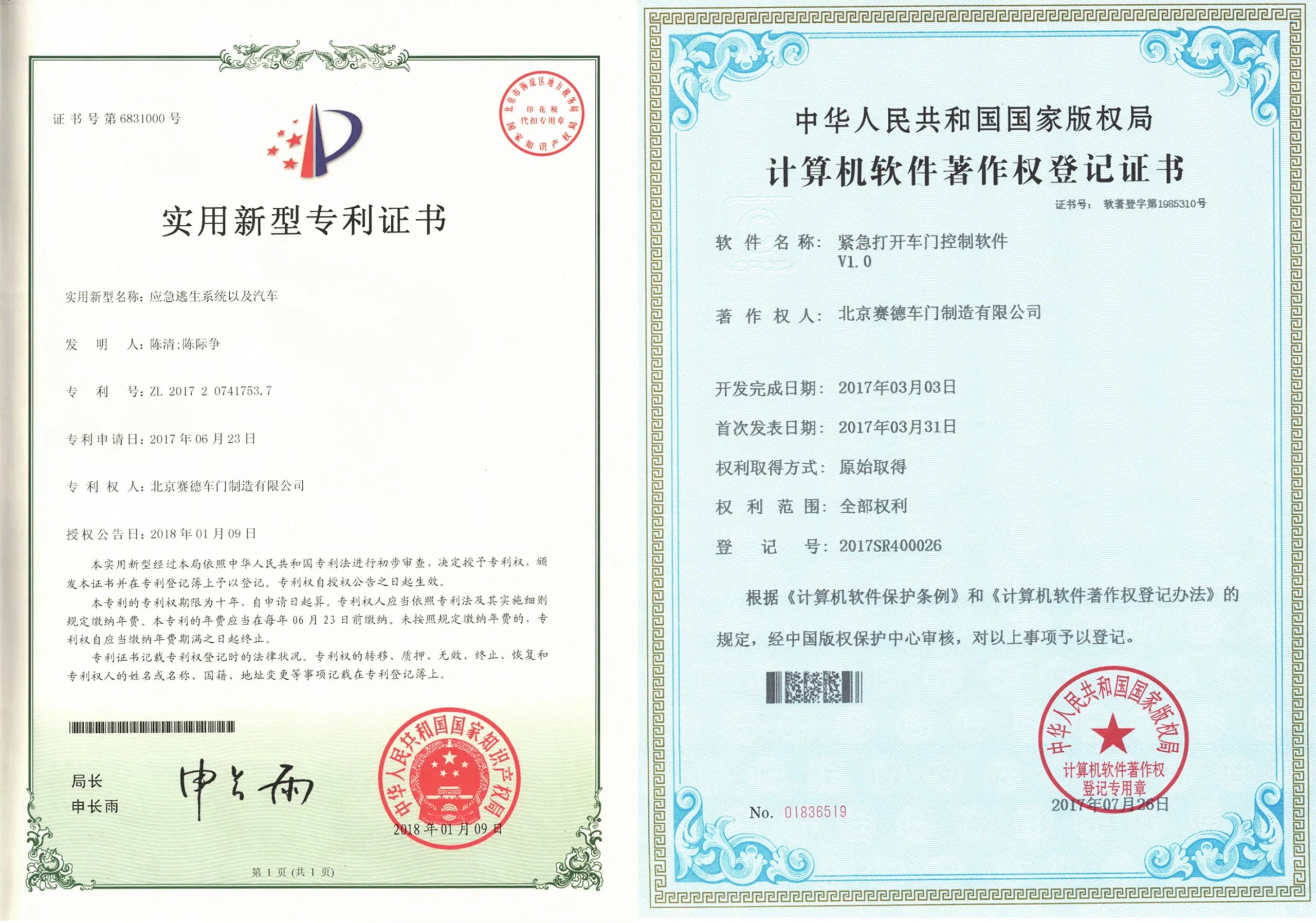 Получил первый в стране патент на систему открывания дверей одним нажатием для эвакуации:Разработана первая в Китае запатентованная система экстренной эвакуации одним нажатием, повышающая безопасность автобусов.